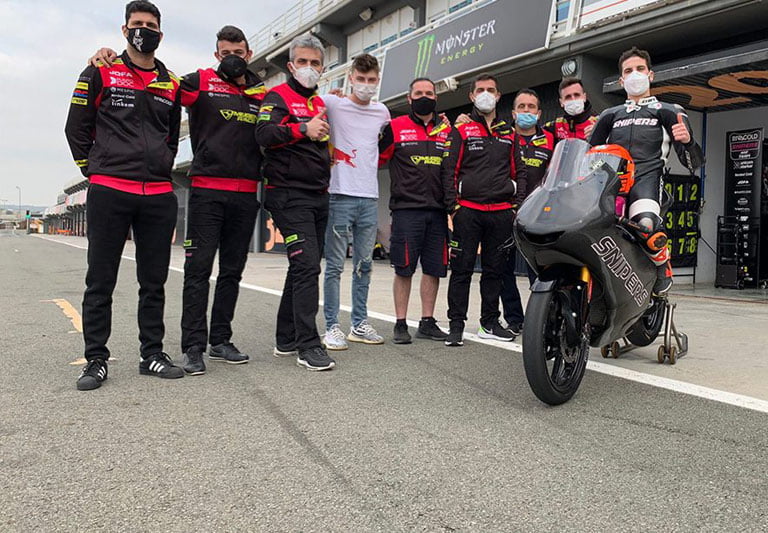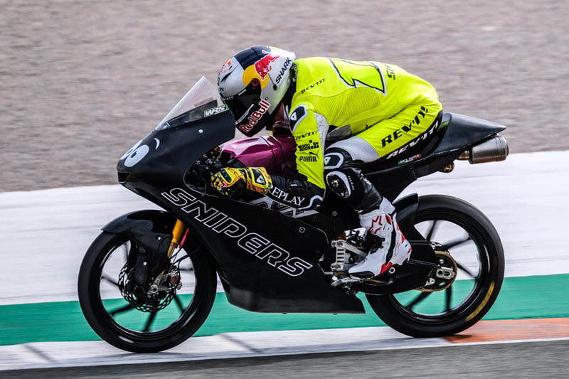 Toujours dans la catégorie des poids légers, Tatsuki Suzuki a réalisé un temps de 1’39.6 et Lorenzo Fellon (photo d’ouverture) un temps de 1’41.0. Pour l’équipe SIC58 Squadra Corse, le test de Valence a été utile pour parcourir les premiers kilomètres de 2021, surtout pour Fellon, qui fait ses débuts cette année. Le Français de 16 ans a commencé à se familiariser avec sa nouvelle équipe et à s’aventurer dans la réalité du championnat du monde, clairement différent du CEV. Pour Suzuki, en revanche, il faut travailler en vue de la saison à venir. Bonnes impressions également pour l’équipe des Snipers, protagoniste avec Andrea Migno et Filip Salač. Tous deux quittent Valence avec un bon feeling et seront de retour sur l’asphalte dans une semaine à Portimão.
