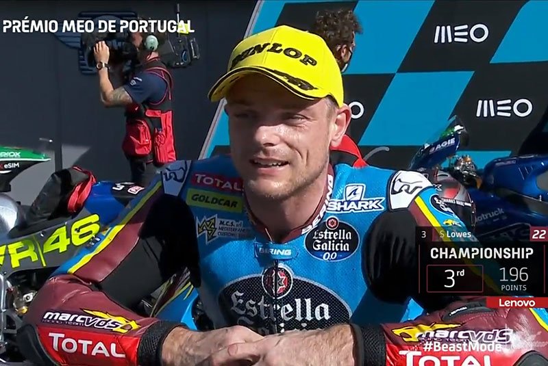 Sam Lowes (3e) : « Je ne m’attendais pas à un podium aujourd’hui. C’est très difficile car j’ai toujours des os cassés dans la main, je pensais n’avoir aucune chance. Je ne gagne pas le titre mais j’ai tout donné et ce podium est comme une victoire. Enea et Luca ont fait un beau championnat, je leur souhaite le meilleur en MotoGP. »