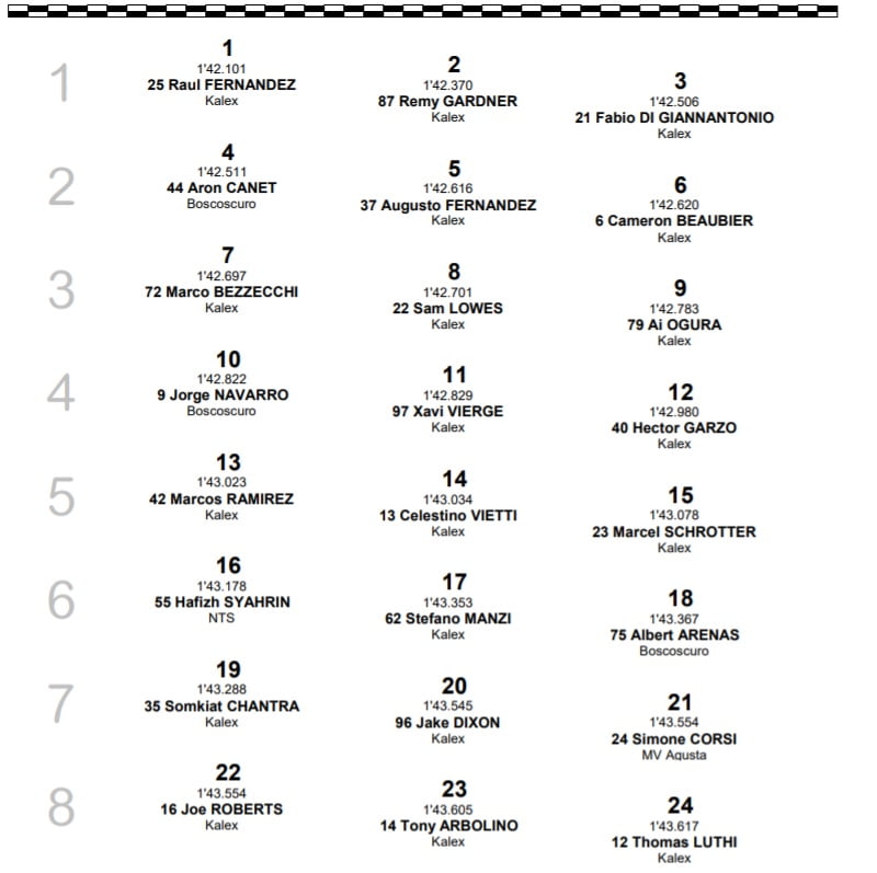 « Quand les sensations sont là, la vitesse est là également ! Mon niveau de pilotage est exactement le même qu’à Jerez ou sur les circuits où j’ai pu décrocher des podiums. Je suis très content, et on va voir demain si je peux faire une bonne course. »