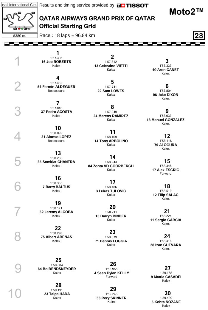 Résultats du Grand Prix du Qatar Moto2 sur le circuit de Losail/Lusail :
