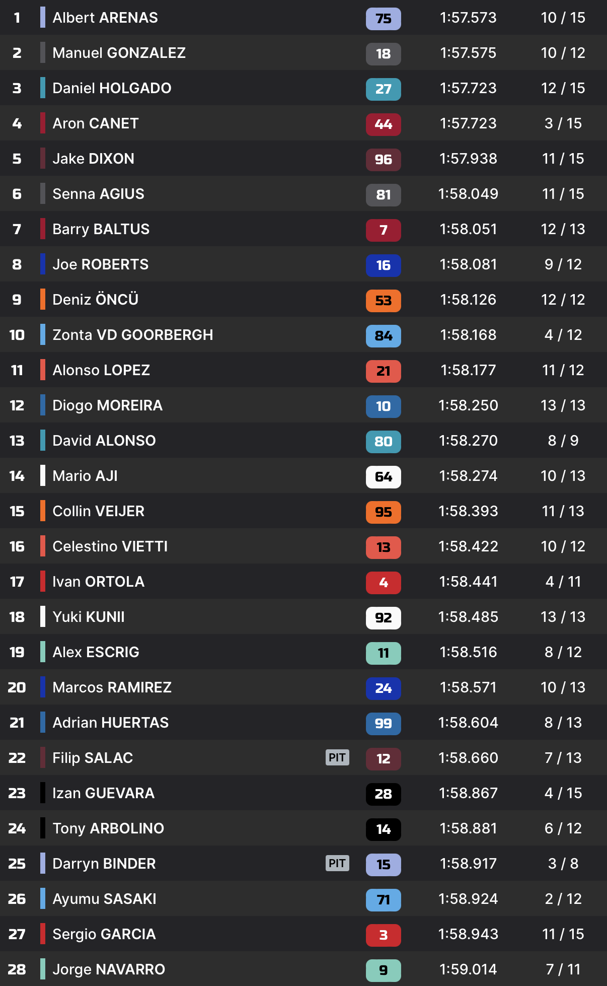 | Q2 | 1’56.788 Aron Canet | |