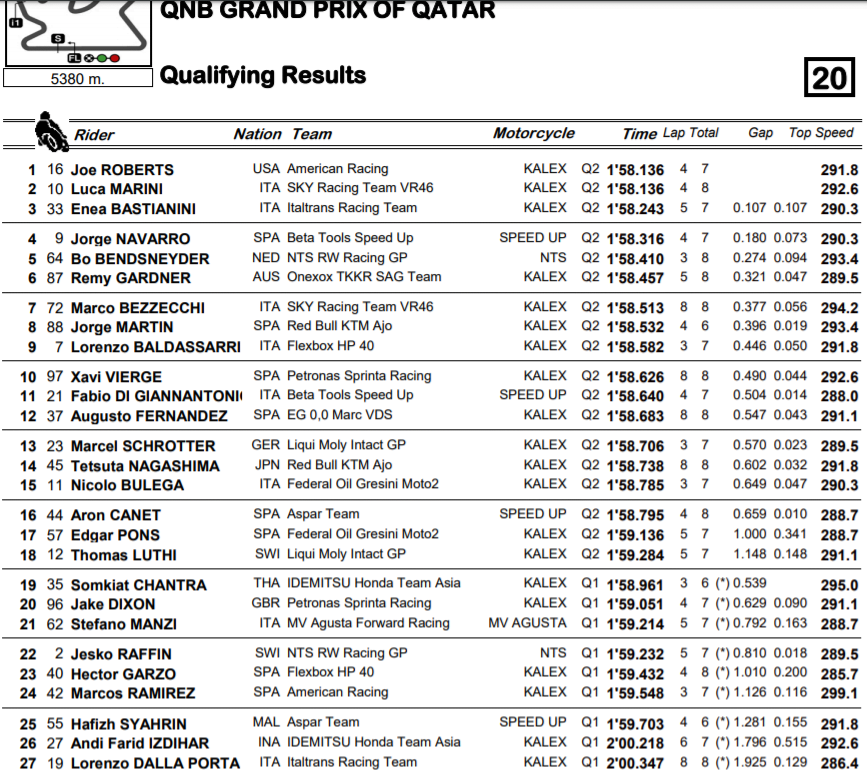 Tom Lüthi, en Moto2, ne passe pas inaperçu. L’ancien Champion du Monde 125 est celui qui compte le plus de victoires sur la grille de départ avec 17 succès. Avec Lorenzo Baldassarri, il est l’un des deux pilotes à pouvoir se targuer d’une victoire à Losail dans la catégorie. Et du haut de ses 33 ans et 184 jours qu’il revendiquera dimanche, il est celui qui a l’état civil le plus avancé de la grille de départ.