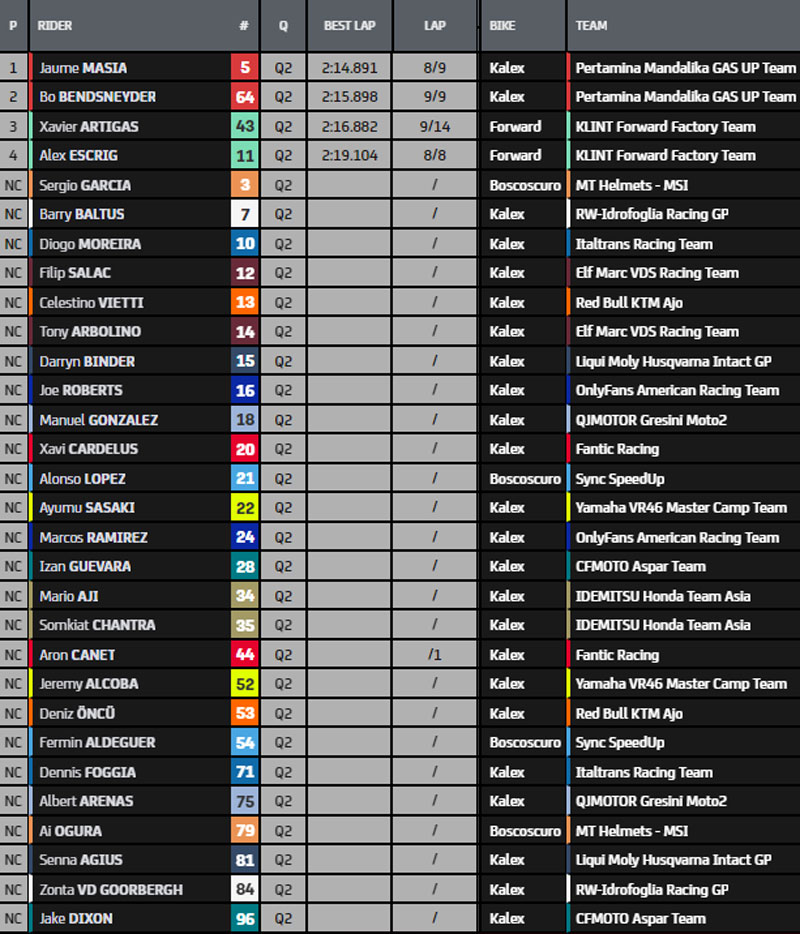 Que va nous réserver cette deuxième séance du Grand Prix Moto2 du Qatar à Losail ? Avant de le savoir, voici le tableau qui résume les faits connus jusque-là.