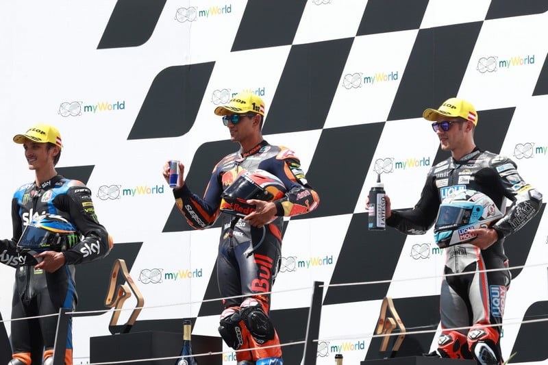 Jorge Martín s’est imposé pour la première fois de sa carrière lors du Grand Prix d’Autriche, sur le tracé du Red Bull Ring, devant Luca Marini et Marcel Schrötter. Voici leurs déclarations d’après course.