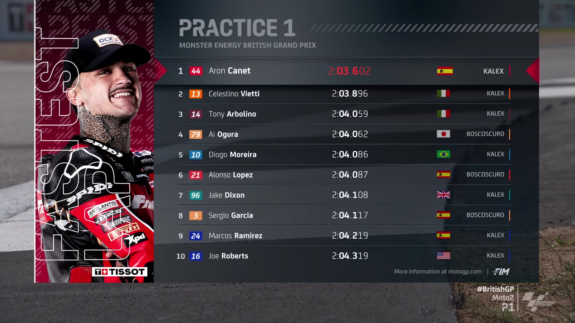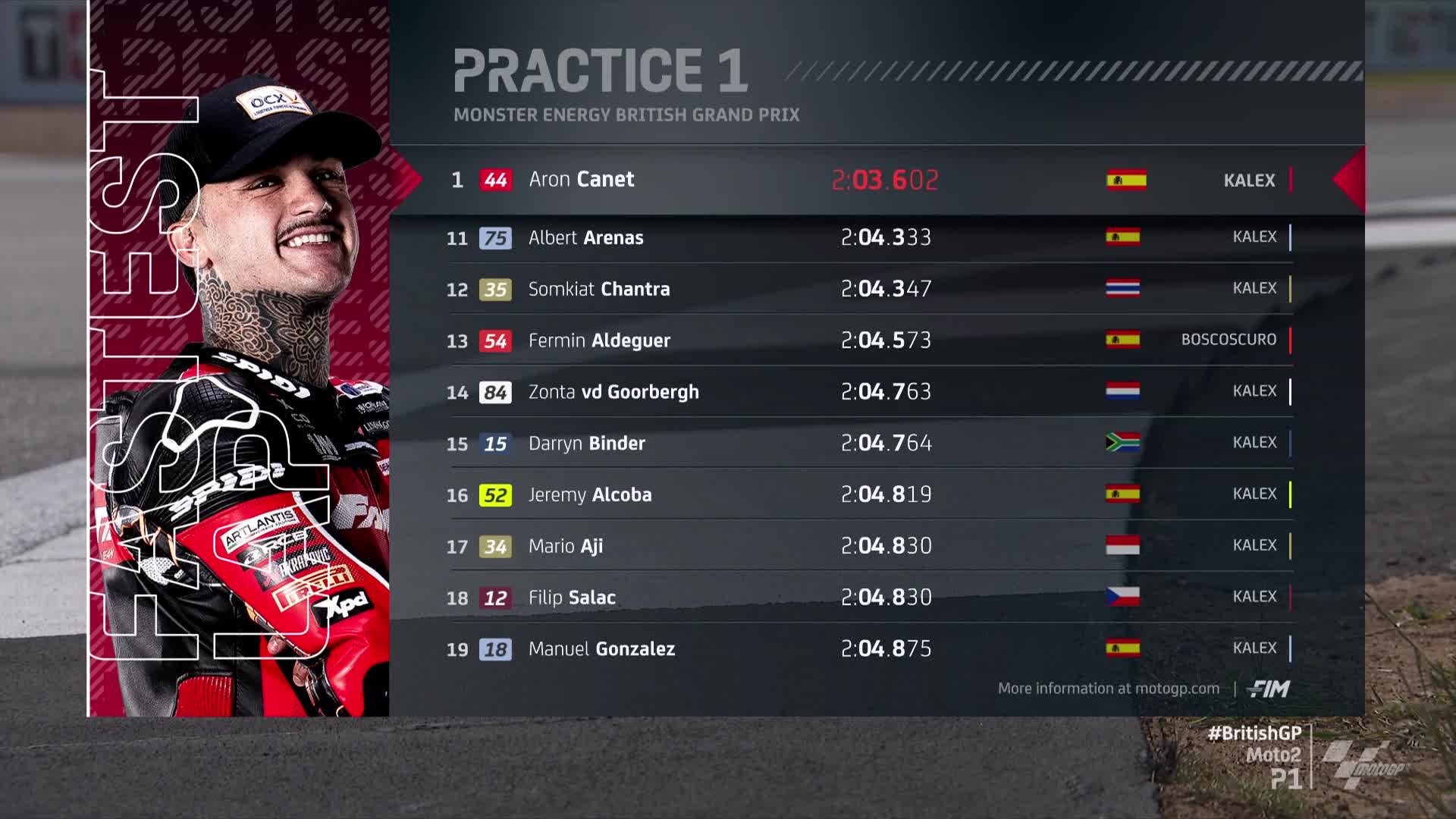 Aron Canet takes Friday top honours with a new all-time lap record 💥#BritishGP 🇬🇧 pic.twitter.com/808LT2hgXi
