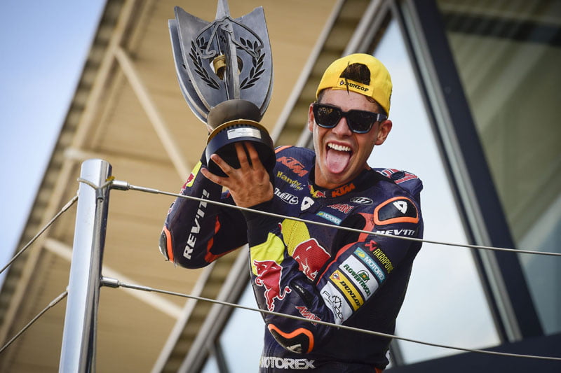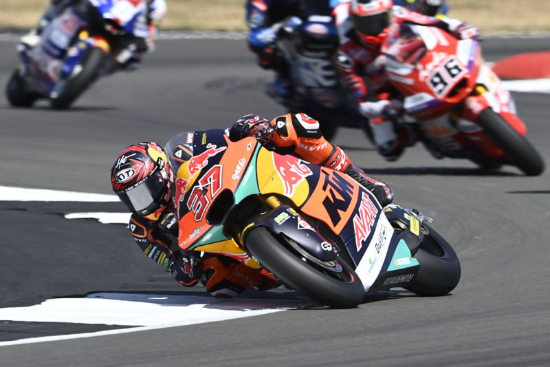 Le pilote du team Moto2 Red Bull KTM Ajo a pris le départ du Grand Prix de Grande-Bretagne en tête après avoir obtenu la pole position la veille. Augusto Fernández s’est retrouvé quatrième dans les premiers tours, mais il a maintenu un rythme élevé pour rester dans le groupe de tête. L’Espagnol a bien géré une course difficile, faisant face à des changements de rythme constants pour remonter dans la hiérarchie dans la dernière ligne droite. Après une lutte intense dans le dernier tour, Augusto Fernández a remporté sa troisième victoire consécutive cette saison et s’empare ainsi du leadership du championnat du monde Moto2.