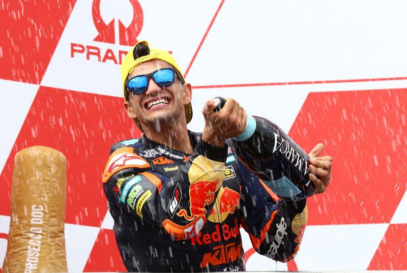 Brad Binder : « C’est formidable d’être de nouveau sur le podium, mais aujourd’hui n’a pas été une course facile. L’écart avec Jorge [Martin] augmentait et diminuait tout au long de la course, mais je ne lui ai jamais échappé. J’ai donné le maximum, attaquant du premier au dernier tour, et nous avons maintenu un bon rythme tout au long de la course. Je suis très heureux d’avoir contribué au 1-2 pour Red Bull KTM Ajo et, bien sûr, c’est toujours un sentiment très agréable de gagner en Championnat du Monde. »