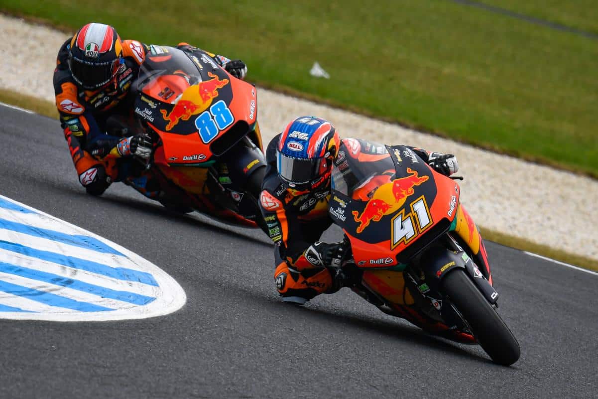 « Nous sommes heureux d’avoir commencé la saison en 2019 avec une défaite après l’autre, mais nous n’avons pas arrêté de nous battre malgré la décision de se retirer et nous avons même presque retourné le championnat. Après la victoire de Brad Binder à Spielberg, nous avons dit : « ce championnat n’est pas encore décidé ». Le chef d’équipe Aki Ajo et tous les techniciens étaient là. Brad Binder nous l’a immédiatement confirmé. C’est une belle récompense pour toutes les personnes impliquées dans le projet Moto2 que nous ayons pu renverser la situation » assure Beirer.