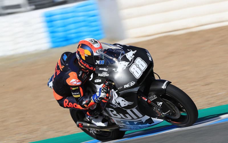 Khairul Idham Pawi, Kalex, Petronas Sprinta Racing, 20e à 1,613 : « Aujourd’hui, c’était mon premier jour avec l’équipe, j’étais vraiment excité d’arriver ici et de rejoindre cette grande famille Petronas Sprinta Racing. Je me sentais bien au début de la journée, mais j’ai eu un peu de chattering à l’avant et à l’arrière. Jusqu’à présent, les sensations sur la moto avec le nouveau moteur sont vraiment impressionnantes et, gmobalement, tout s’est bien passé. Nous avons juste besoin de nous réunir avec l’équipe, d’analyser les informations que nous avons recueillies aujourd’hui et de trouver des choses pour nous aider à améliorer demain ».