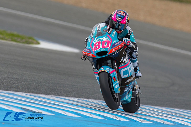 Le pilote de Los Palacios aborde sa première saison dans cette catégorie, de nouveau au sein du team Red Bull KTM Ajo avec lequel il a remporté le Championnat du Monde Moto3. Remis de son accident de l’an dernier, il est promis à un bel avenir, compte tenu de son talent indéniable. Comme les autres, il dispose de deux jours pour poursuivre son adaptation et sa progression sur un circuit qu’il connaît parfaitement. Cependant, sa journée n’a pas commencé comme prévu : une glissade dans le virage Jorge Lorenzo, en début de séance, l’a envoyé au sol, heureusement sans blessure. Il est revenu en piste plus tard pour boucler un bon nombre de tours, même si ses chronos étaient loin d’être les meilleurs. Euphémisme…
