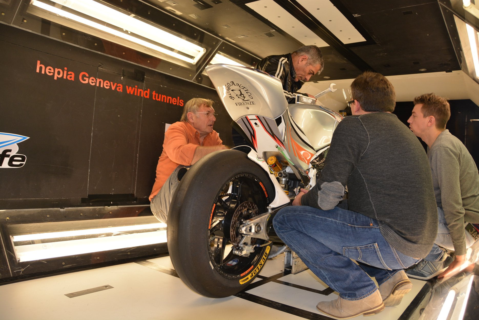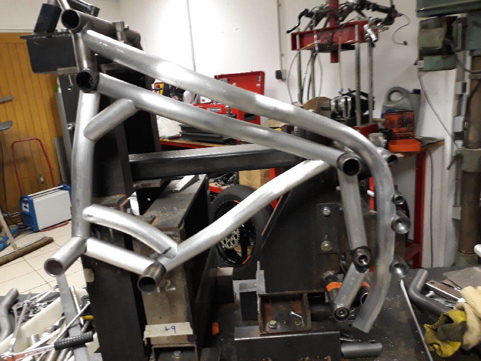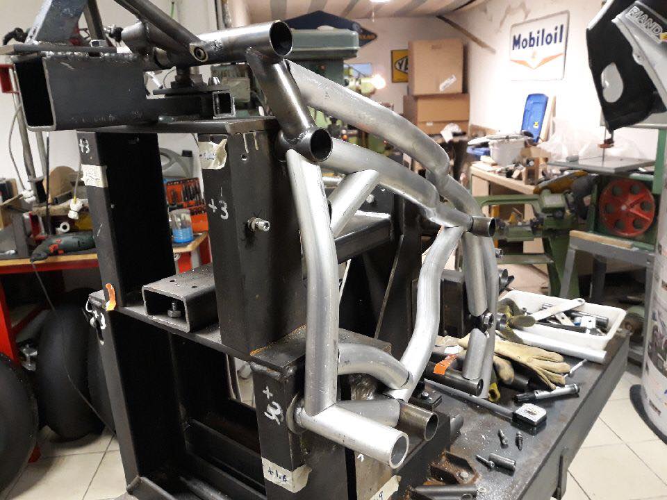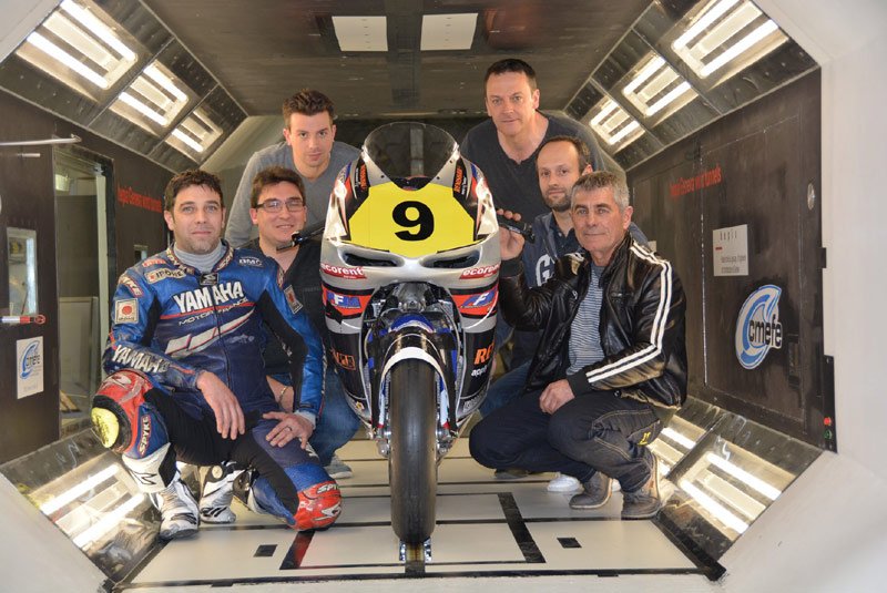 Nouveau châssis en acier, nouveau châssis en aluminium pour faire des comparaisons, passage la soufflerie HEPIA-CMFE de Genève (voir ici l’interview du professeur Patrick Haas); on fait feu de tout bois dans la petite équipe de Christian Boudinot, le constructeur de la TransFiormers Moto2.