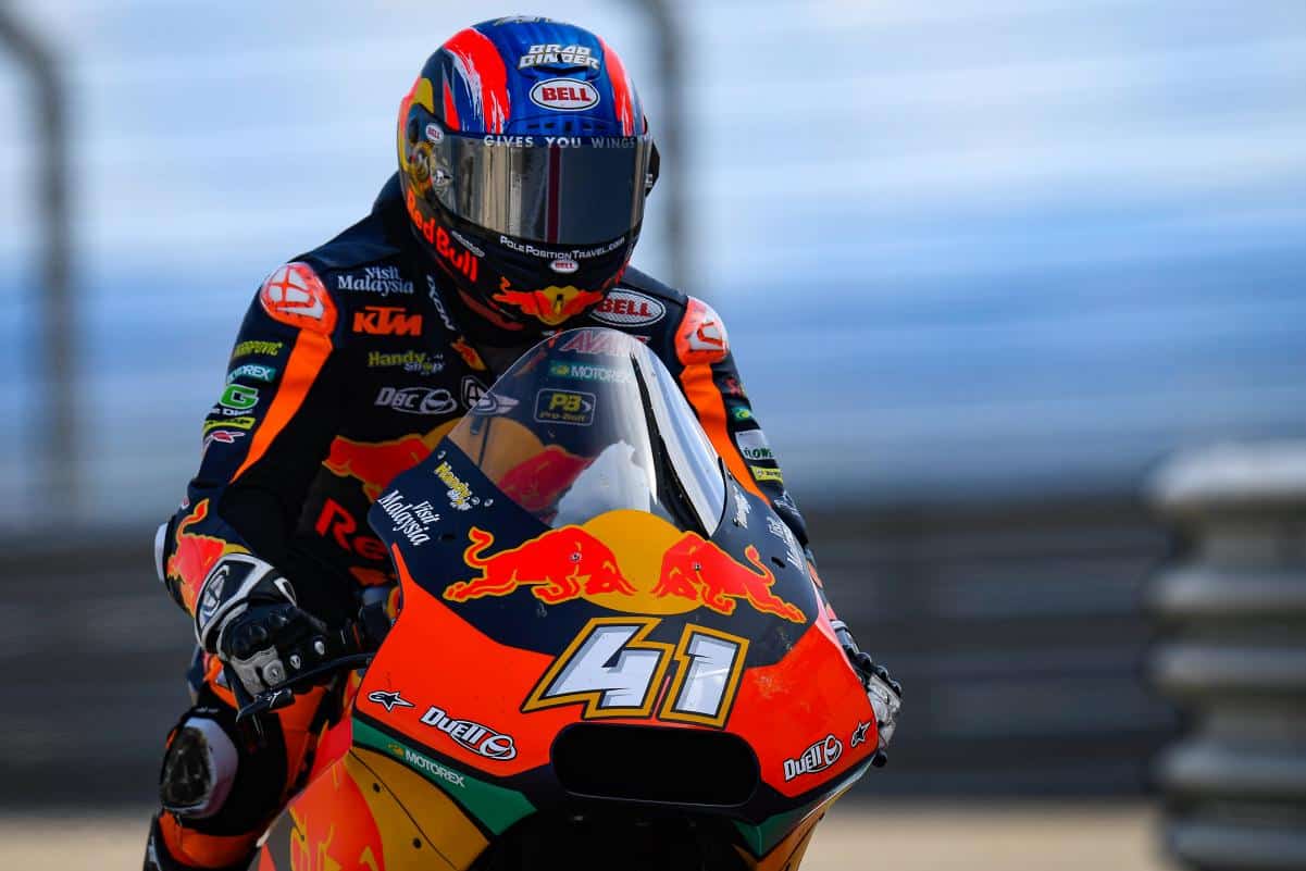 Brad Binder est un ancien Champion du Monde de Moto3 au style de pilote engagé et au caractère bien trempé. Il semble être en mesure de répondre présent dans les grands moments où les choses se décident. En Autriche et en Aragón, où KTM s’est retrouvé en pleine réflexion sur des choix déterminant l’avenir, il a répondu présent pour en être. L’an prochain, il débutera en MotoGP sur la RC16 du team Tech3 qui se délecte déjà de l’accueillir.