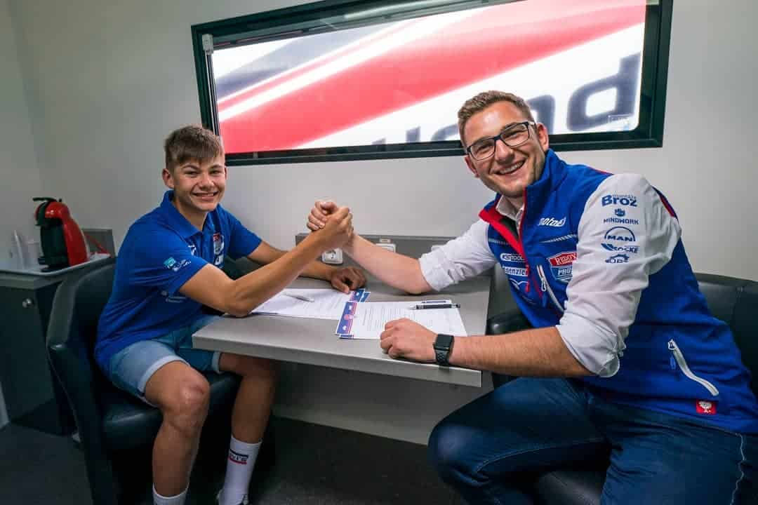 Florian Prüstel : « Nous avons eu de nombreuses discussions avec Barry Baltus dans le passé et il était une option que j’aimais beaucoup. Nous sommes heureux de l’accueillir dans notre équipe et d’offrir une plateforme pour le marché de l’Europe du Nord. Nous attendons avec impatience la coopération avec impatience, car Barry est un pilote très motivé. Il a déjà célébré quelques succès dans le CEV et dans la Rookies Cup. À l’âge de 15 ans, je lui souhaite de mener à bien la saison des Championnats du monde juniors et j’espère qu’il célébrera un bon départ avec nous. J’ai hâte à la prochaine saison avec nos deux recrues. «