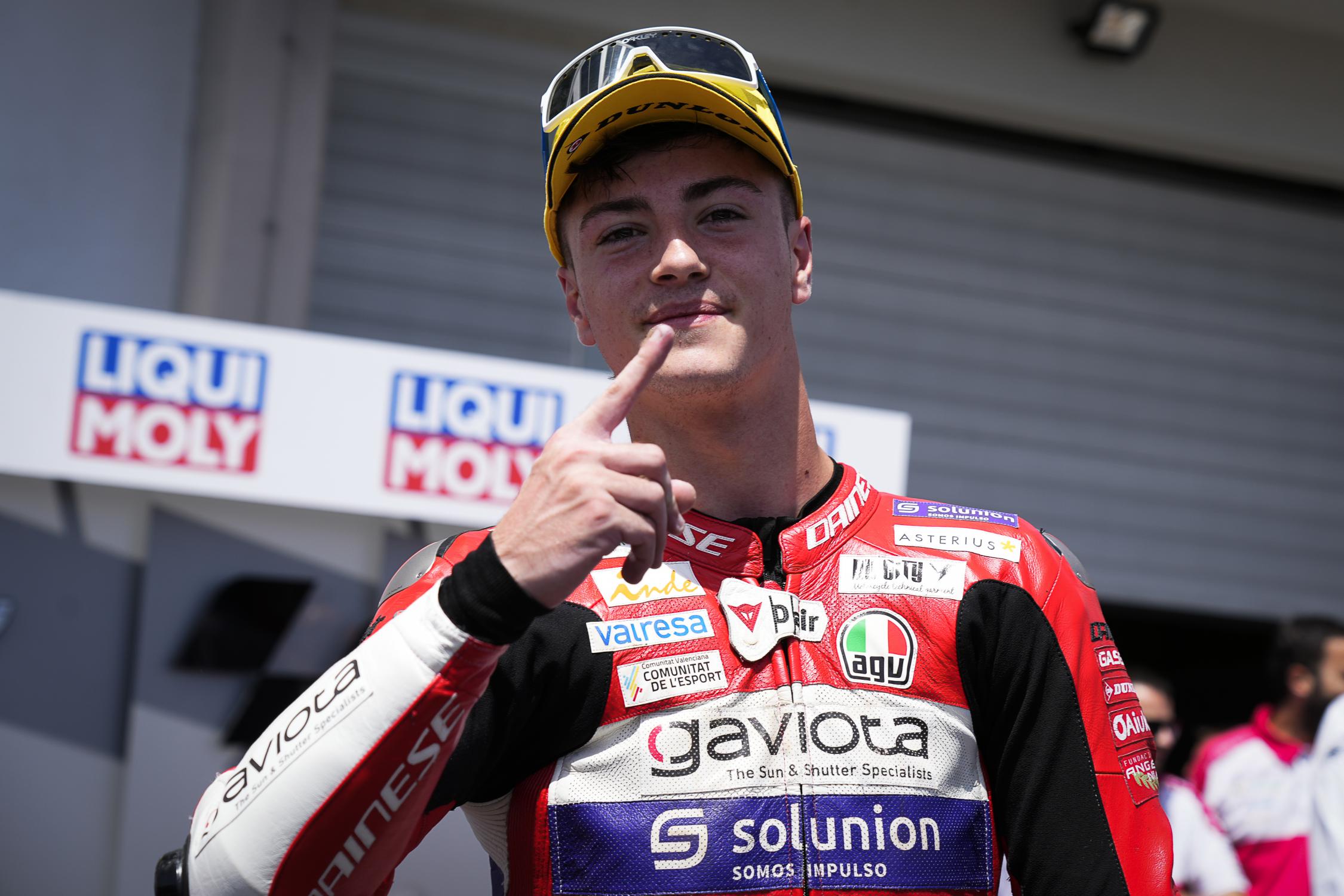 La catégorie Moto3 a ouvert les séances de qualification, au cours de laquelle Daniel Holgado (KTM, Red Bull KTM Ajo, #96) pensait tenir sa toute première pole, mais c’était sans compter sur un ultime tour d’Izan Guevara (GasGas, GasGas Aspar Team, #28) en 1’25.869, qui n’a réalisé qu’un seul tour chronométré lors de la Q2, en attendant les deux dernières minutes pour montrer de quoi il était capable. Le Majorquin battait au passage sa précédente référence pour un peu plus d’un dixième. Cela laissait derrière lui un écart de trois dixièmes sur ses poursuivants, que Dennis Foggia (Honda, Leopard Racing, #7) n’a réduit que de quelques centièmes au passage sous le drapeau à damier.