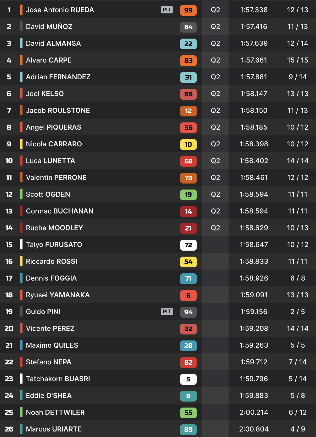 | Q2 | 1’58.059 David Alonso | |