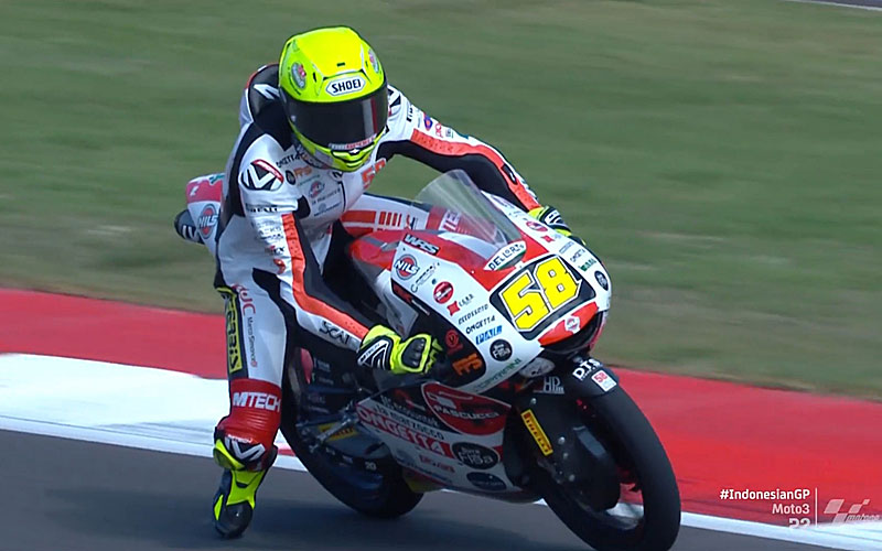 Xavier Artigas et David Muñoz sont tous les deux par terre, au même virage et sans se toucher ! C’est une course à élimination, tous les top-pilotes ou presque sont à terre. Daniel Holgado peut réaliser une très bonne opération, tout comme Diogo Moreira. Cette course ne finit plus de nous surprendre : Xavier Artigas est déjà de retour dans le top 10 après être remonté sur sa machine en un rien de temps. Ce n’est pas fini, sauf pour la victoire qui semble acquise à la cause de Tatsuki Suzuki.