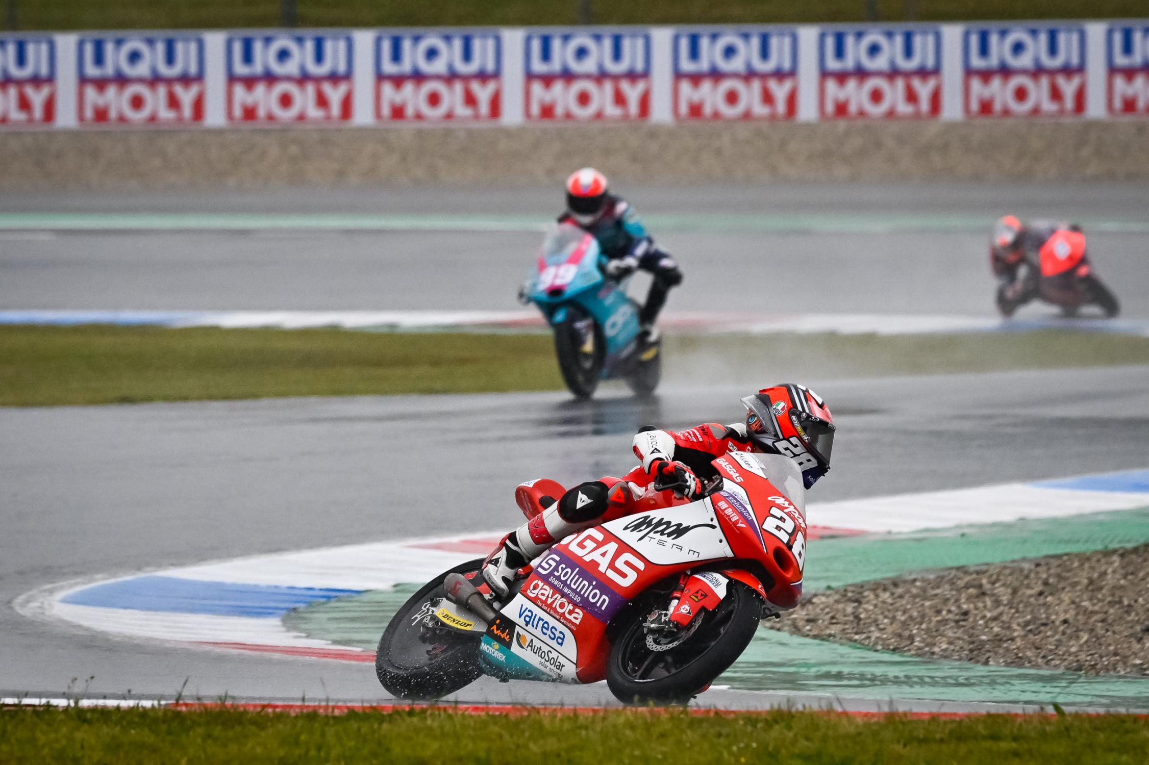 La première journée aux Pays Bas a été plus compliquée pour Xavier Artigas (CFMoto, CFMoto Racing PruestelGP, #43) et Daniel Holgado (KTM, Red Bull KTM Ajo, #96), qui terminent respectivement 17e et 18e. Quant à Dennis Foggia (Honda, Leopard Racing, #7), il s’est lui aussi retrouvé en difficulté sur cette piste humide, puisque l’Italien qui brille généralement moins dans ces conditions ne pouvait que se classer qu’à la 21e position, juste devant Adrián Fernández (Red Bull KTM Tech3).