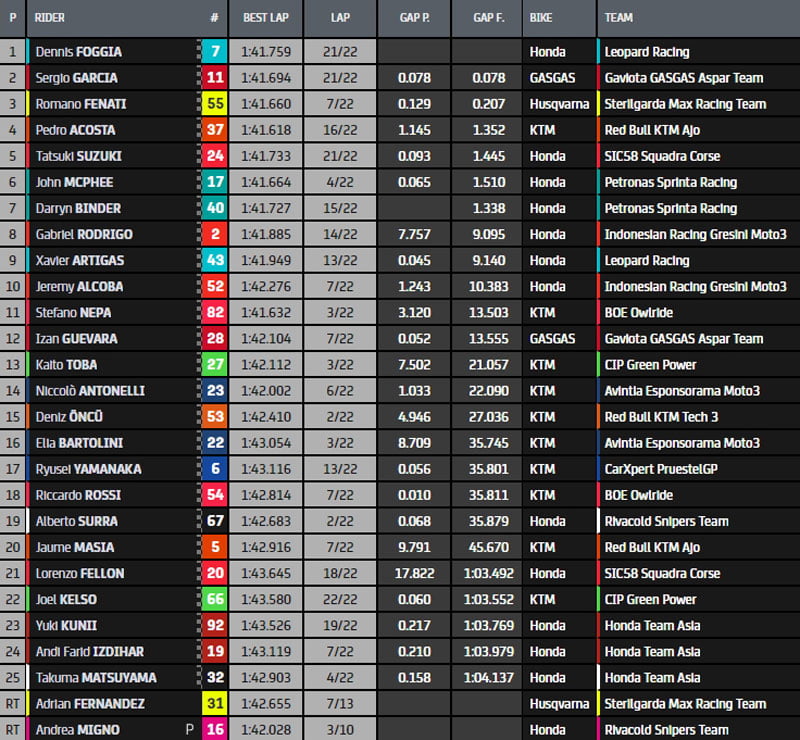 Crédit Classement : MotoGP.com