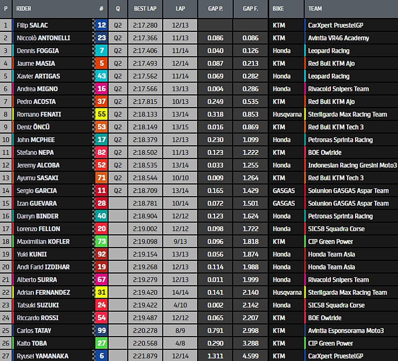 Moto3 Austin J2 : chronos