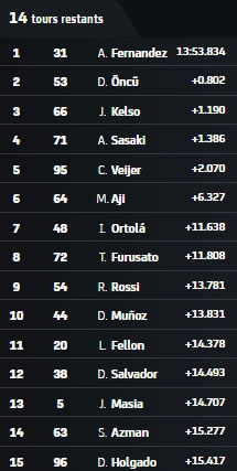 C’est le moment où Deniz Oncu produit son effort et remonte d’un seul coup sur Adrian Fernandez. Mais une fois en contact, le pilote turc ne paraît pas en mesure d’attaquer l’Espagnol.