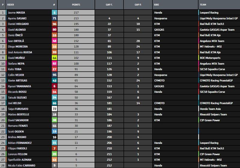Crédit classement : MotoGP.com