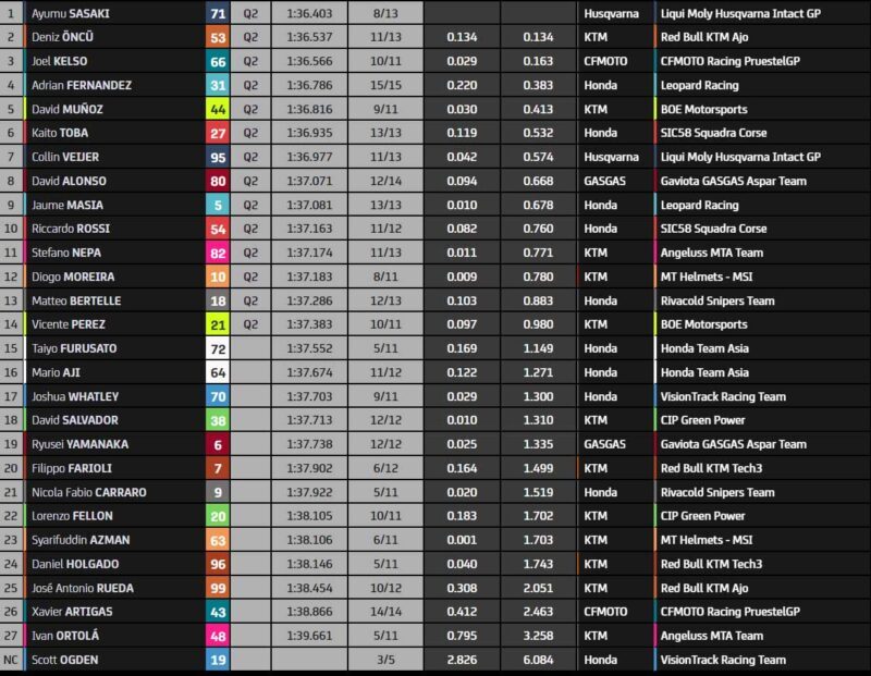 Ayumu Sasaki termine donc en tête de cette séance devant le Turc. Holgado devra passer par la Q1.