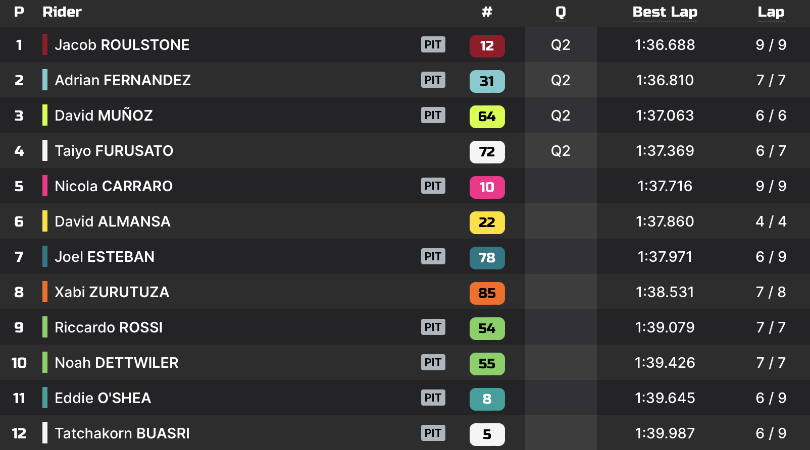 Q1 1’37.538 Daniel Holgado 1’36.688 Jacob Roulstone
