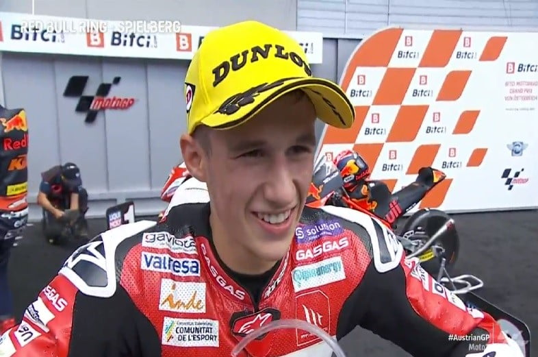 « Avant toute chose, je tiens à grandement remercier toute mon équipe car ils ont fait un travail remarquable par rapport au weekend dernier. J’ai fait de mon mieux aujourd’hui, j’étais à fond à chaque tour. C’est incroyable, certes je me suis battu pour la victoire mais je finis deuxième dans le dernier tour, mais le simple fait d’être sur le podium sur le circuit de KTM et de Red Bull, c’est quelque chose de formidable. Pour être honnête je ne m’attendais pas à un podium jusqu’à hier, mais ce matin j’ai senti que j’avais un gros rythme lors du warm-up, et je me suis dit qu’on allait pouvoir faire du bon travail aujourd’hui. J’ai beau avoir fini deuxième, mon objectif est de remporter la prochaine course. »