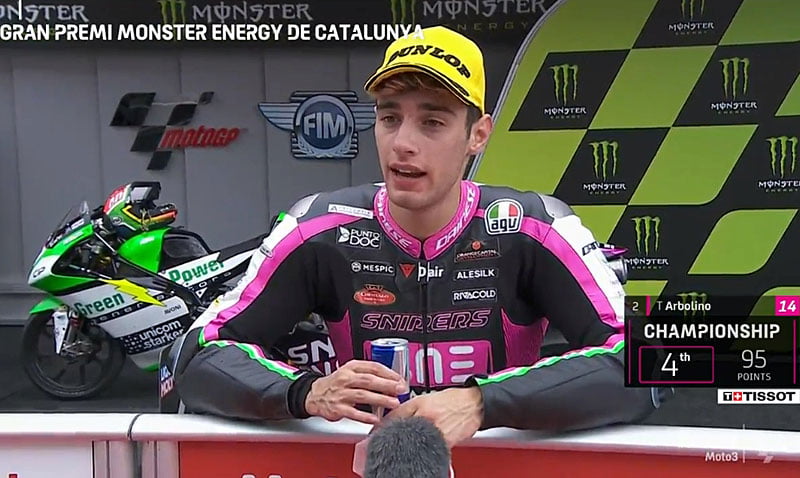 Tony Arbolino (2e) : « Je me sens très bien. Je ne suis pas content à 100% car je ne voyais pas sur mon tableau de bord à quel tour on en était. C’était difficile pour moi, j’étais dans l’interrogation. C’est important d’être sur le podium, je suis super content car on travaille dur. Quand je suis en bagarre en tête je me sens bien, j’ai pu gérer mes pneus. On travaille pour avoir une très bonne moto, on a le podium, je vais pouvoir bien dormir ce soir (rires). »