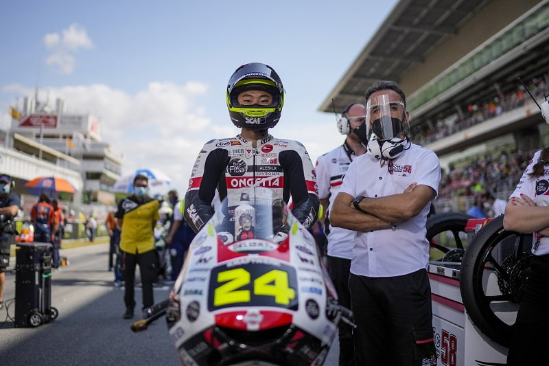 Nous avions tellement d’attentes, toutes envolées… Nous avons ramené à la maison une troisième dernière place et deux chutes. Tatsuki est perdu, le Tasu des « grandes satisfactions » a fait une pause. Il peut être compétitif dans les essais mais dans la course, dans les dernières, il utilise sa propre stratégie que je n’approuve pas, il tourne à l’extérieur et pas dans la courbe, il n’est pas incisif, comme s’il roulait avec la moitié de sa capacité. C’est pourquoi il se retrouve toujours à l’arrière du groupe où le risque est plus grand. Je dois admettre que cette année, quelques coureurs qui sont arrivés du CEV sont tellement agressifs qu’ils sont prêts à risquer leur vie, mais il doit se retrouver, il doit recommencer à piloter comme avant et arrêter de suivre ces trajectoires touristiques. »