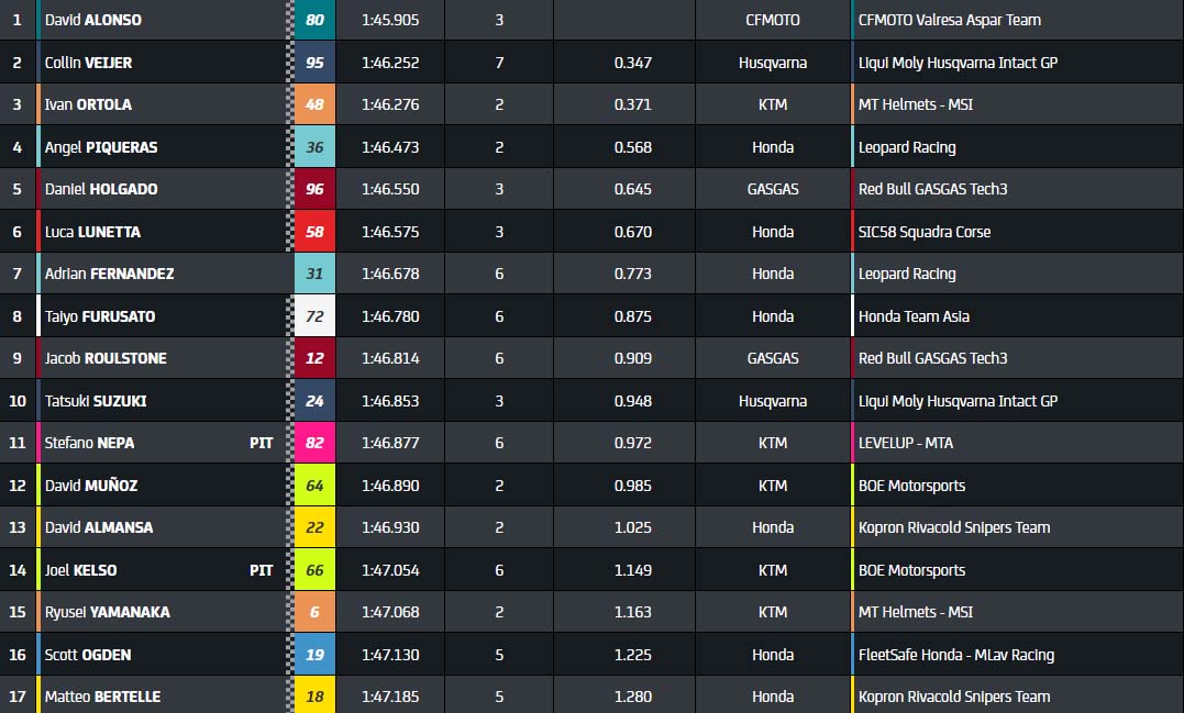 | Q1 | 1’47.766 Matteo Bertelle | 1’47.301 Tatsuki Suzuki |