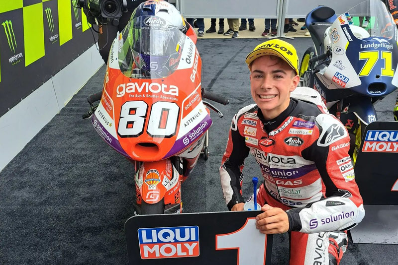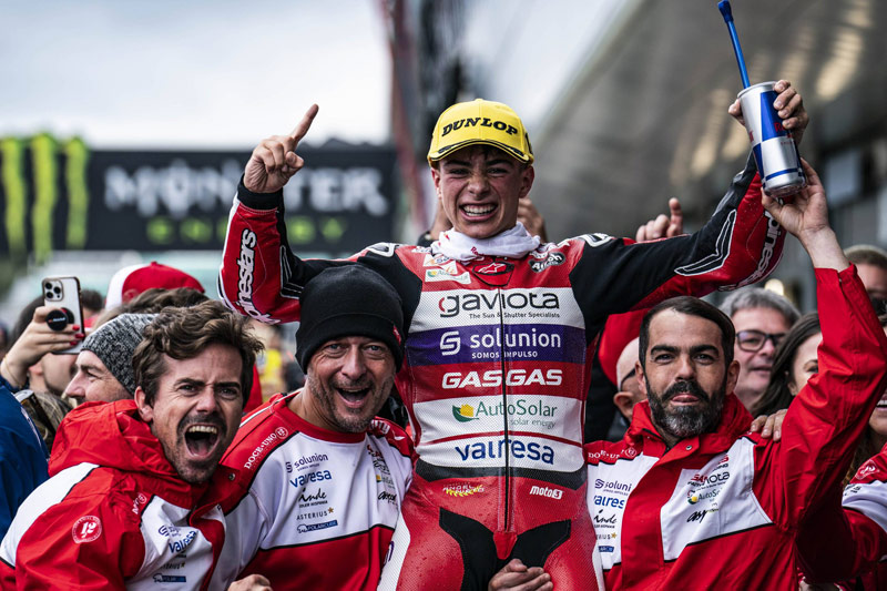 Avec David Alonso, l’équipe Gaviota GASGAS Aspar a vécu un carrousel d’émotions qui s’est terminé par la première victoire du jeune espoir à Silverstone. Le meilleur rookie de la catégorie, aujourd’hui sixième au classement général, a décroché son deuxième podium de la saison, mais cette fois en montant sur la plus haute marche du podium après avoir remonté pas moins de 27 positions !