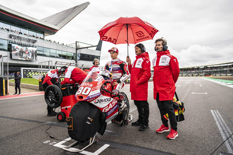 Après une dernière séance d’essais sous la pluie au cours de laquelle les chronos de la veille n’ont pu être améliorés, le pilote Gaviota GASGAS Aspar, David Alonso, a abordé la Q1 sans pluie, mais sur une piste détrempée. Ryusei Yamanaka a passé la majeure partie de la séance dans les quatre positions qui donnent accès à la Q2. Malheureusement, il a été victime d’un incident alors qu’il bouclait son premier tour et n’a pas pu réaliser de chrono. Le Colombien n’a pas pu revenir en piste, se résignant ainsi à partir du fond de la grille de départ du Grand Prix de Grande-Bretagne.