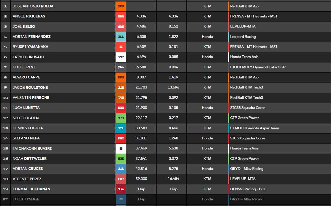 Absolutely dominant! @ruedajr99 crossed the line with a 4.3s advantage 🔥🔥🔥#SpanishGP 🇪🇸 pic.twitter.com/DG8dTKLSnC