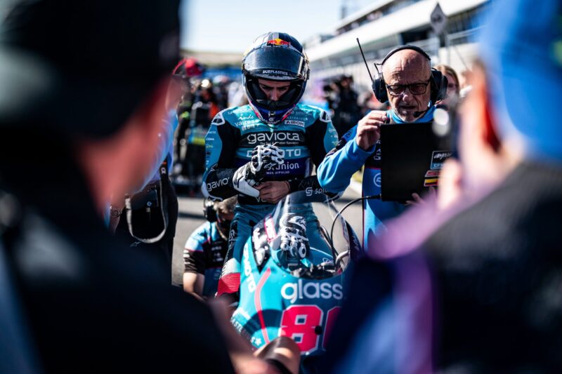 C’est parti pour la Q2, et cette fameuse course à la pole ! José Antonio Rueda (Red Bull KTM Ajo), après une absence de deux courses, revient bien. Il est premier à l’issue de la première salve, mais on sait qu’au niveau du chrono, David Alonso en a encore sous le pied. Et d’ailleurs, le Colombien ne tarde pas à répliquer. Attention à Ivan Ortola, toujours dangereux, bien sûr.
