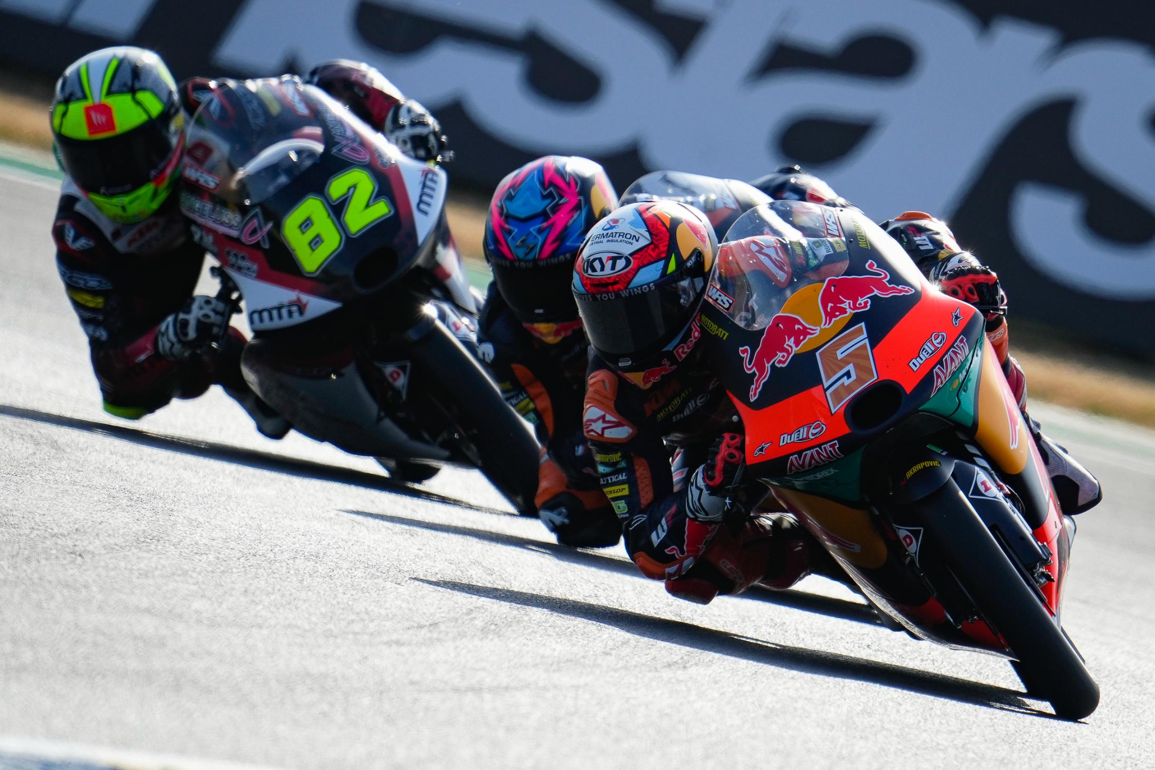Enfin, à l’issue de cette séance pour se mettre en jambe, Jaume Masià (KTM, Red Bull KTM Ajo, #5) garde les commandes en 1’42.586, et mène la séance devant Daniel Holgado (KTM, Red Bull KTM Ajo, #96) et Diogo Moreira (KTM, MT Helmets – MSI, #10). Lorenzo Fellon (Honda, SIC58 Squadra Corse, #20) est 5e, à 0.505s de la tête.