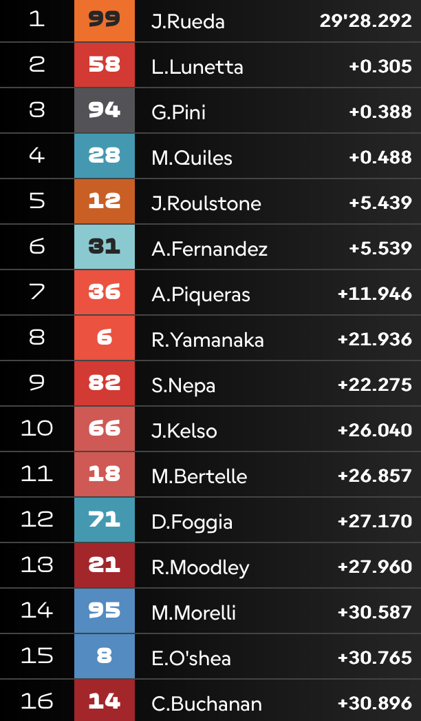 | Record | 1’37.332 Ivan Ortola 2024 | 1’37.022 Adrian Fernandez |