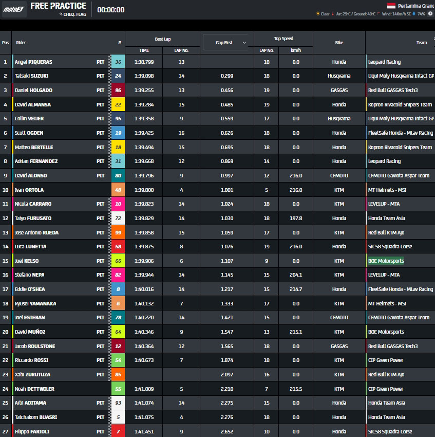 Back to the front 🆙@AngelPiqueras18 goes nearly half a second quicker than @daniholgado96 🔥#IndonesianGP 🇮🇩 pic.twitter.com/xIyS7Kf7jP