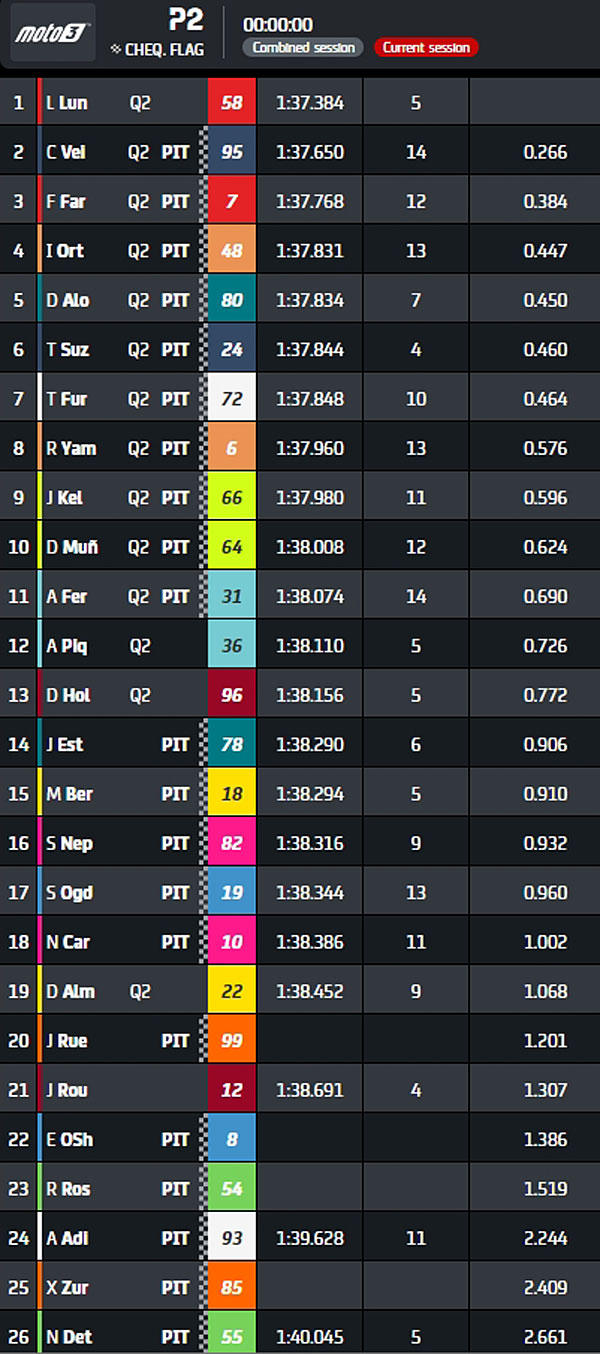 | P2 | 1’38.781 Jaume Masia | 1’37.384 Luca Lunetta |