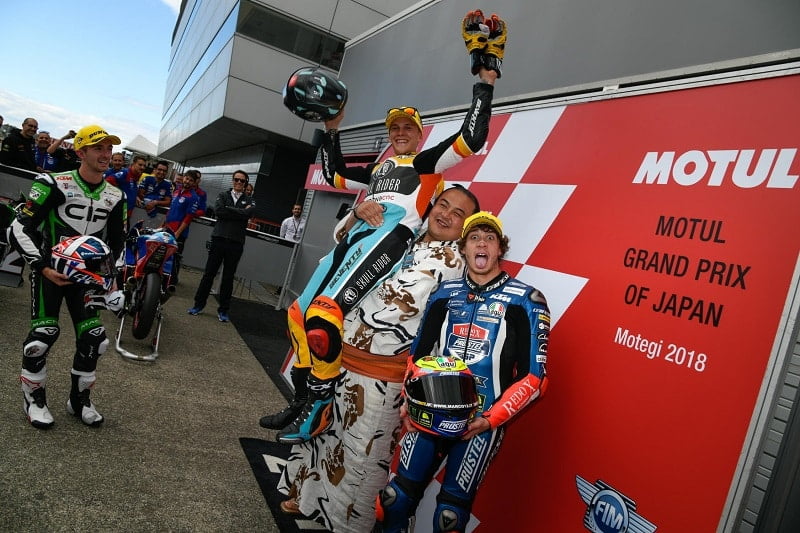 « Moi j’ai un petit faible pour Marco Bezzecchi puisqu’il a commencé l’année dernière les Grands Prix dans notre équipe où nous l’avons formé. Lors des week-ends de course cette année, il passe régulièrement dans notre box pour discuter de pilotage. Nous avons toujours de très bons contacts, donc j’ai une petite préférence pour Marco.
