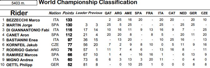 « Je suis très content pour Jakub (ndlr : Kornfeil, coéquipier de Bezzecchi chez PruestelGP et pole position). Lui a bien géré en partant quelques secondes avant, et il a eu un très bon rythme pendant toutes les séances. »
