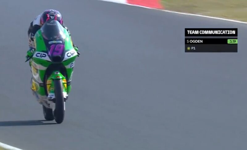 Il fait grand beau temps ce samedi matin, ce qui signifie que les concurrents de la plus petite catégorie pourront profiter de conditions parfaites lors de cette deuxième séance. Et ça part mal pour Eddie O’Shea (Honda GRYD MLav Racing), victime d’un problème mécanique.