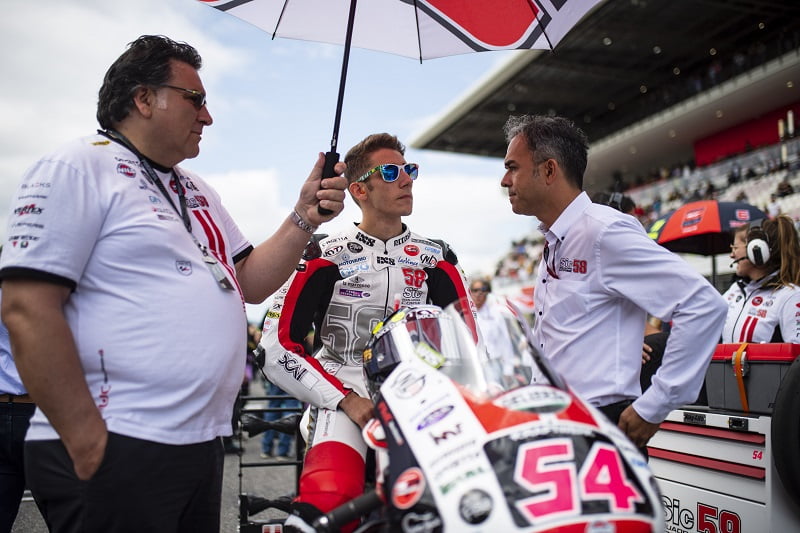 Le « parler vrai » du patron, dans la SIC58 Squadra Corse on connaît, mais cette fois il s’est quelque édulcoré au bénéfice d’un compte-rendu particulièrement exhaustif mais rendant simplement hommage aux performances de Lorenzo Fellon et Riccardo Rossi en Moto3, ainsi que Kevin Zannoni en MotoE, sans même déclencher l’ire du patron à l’encontre de Diogo Moreira… Étonnant !