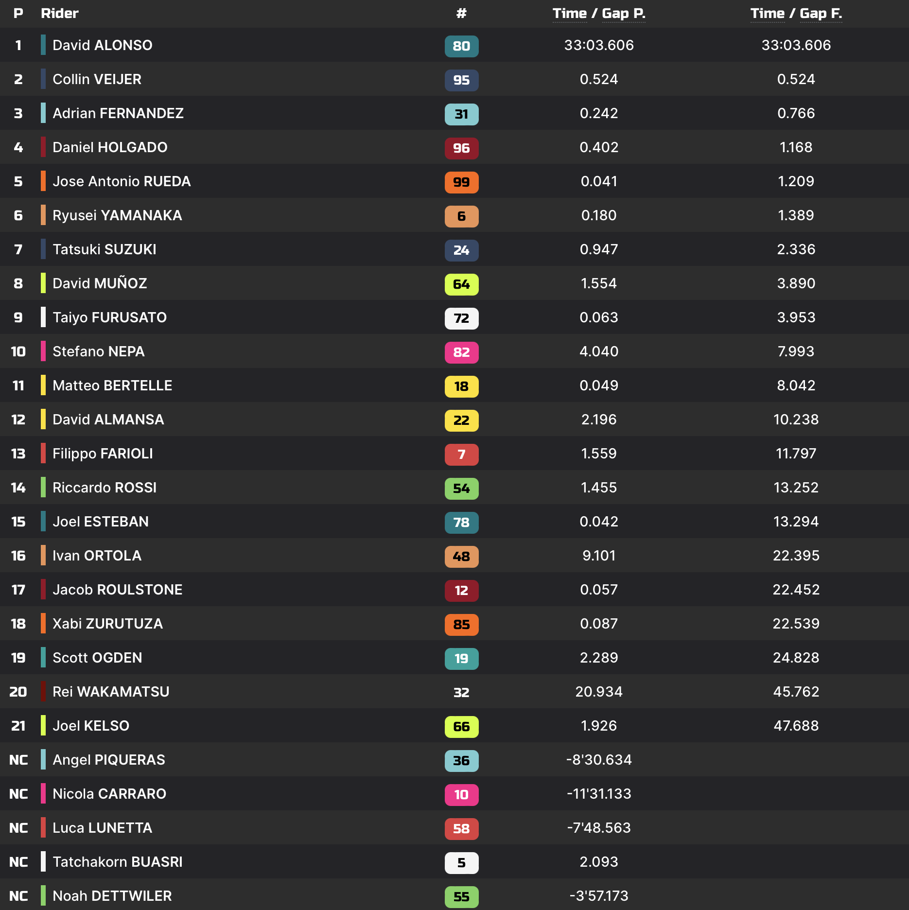 Course Masia, Sasaki, Holgado (Voir ici) Alonso, Veijer, Fernandez