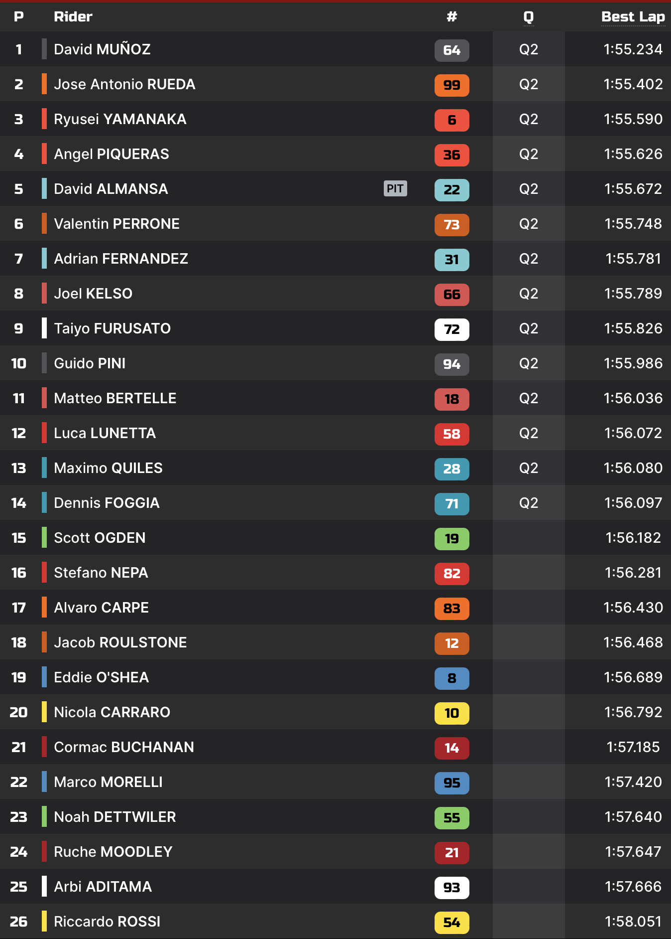 | Q2 | 1’54.761 Ivan Ortola | |