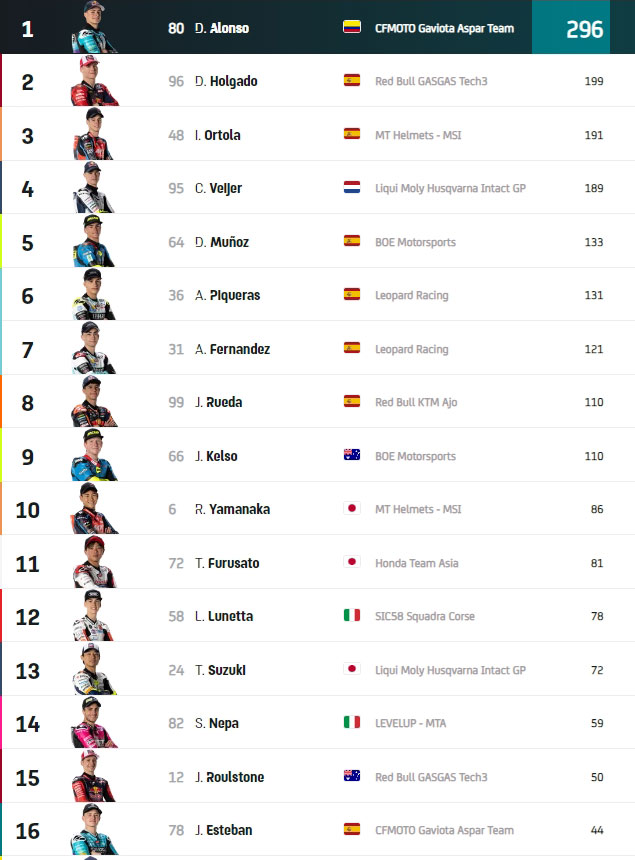 Crédit classement : MotoGP.com