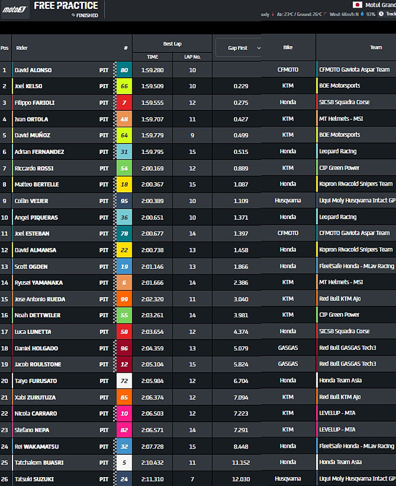 Raising the bar 👊@31AdriFernandez goes quickest again ahead of his teammate @AngelPiqueras18! 🔝#JapaneseGP 🇯🇵 pic.twitter.com/loMlzalIvn