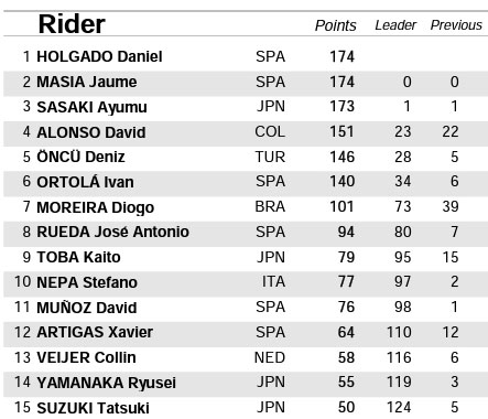 Crédit classement : MotoGP.com