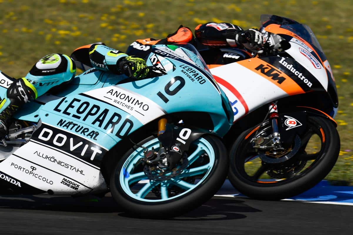 Ce Grand Prix du Japon pourrait bien être un tournant dans la course au titre catégorie Moto3. Cette dernière a en effet pris un tour particulier en faveur de l’Italien Lorenzo Dalla Porta qui a joué la victoire lors de la dernière manche en Thaïlande tout en prenant acte de la déconvenue de son rival Arón Canet. Accroché par un Darryn Binder qui n’a pas augmenté sa côte de popularité au sein du peloton, l’Espagnol n’a pas récolté le moindre point à Buriram, se retrouvant ainsi à 22 points du pilote Leopard avant l’échéance du Motegi…