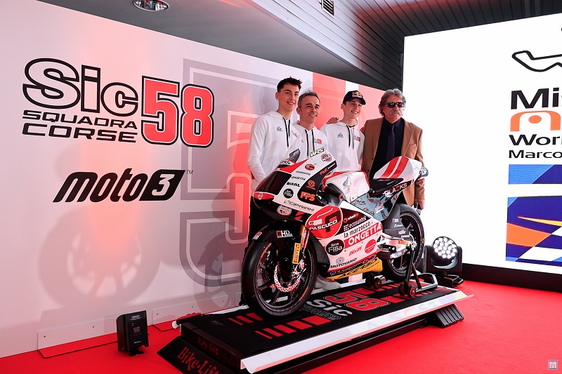 Le moins que l’on puisse dire, c’est que l’on est très loin du format des traditionnelles présentations de lancement de saison, et Paolo Simoncelli a mis l’accent sur les valeurs humaines de son équipe et de ses partenaires, laissant même de côté pour le moment le nom de ses deux pilotes dans la catégorie d’entrée des Grands Prix, Luca Lunetta et Filippo Farioli.